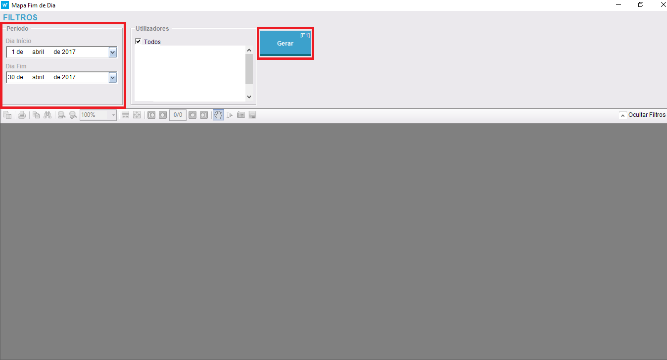 Aceda ao Menu Gestão – Mapa Fim de Dia.