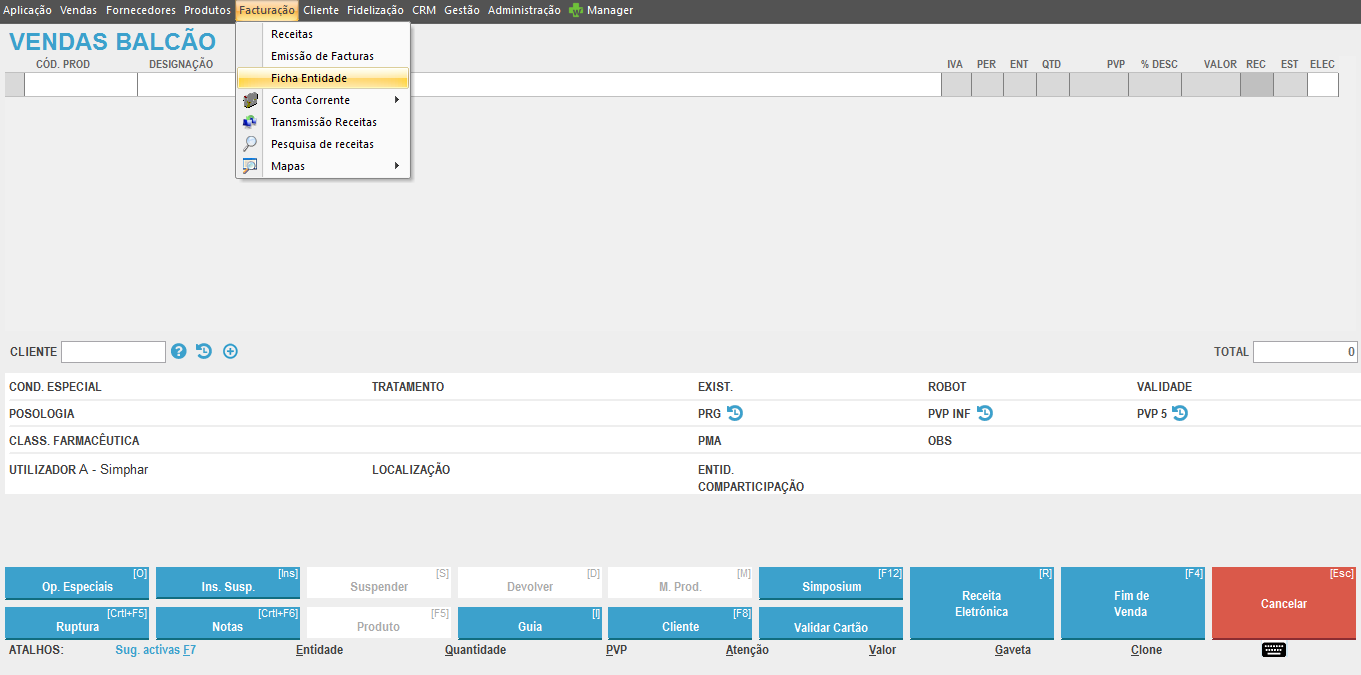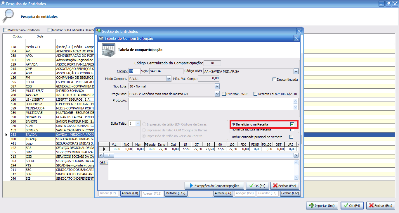 A Ficha de Entidade deve ter a recolha do nº de beneficiário na dispensa ativada.Para confirmar esta condição, aceda ao Menu Faturação – Ficha Entidade.