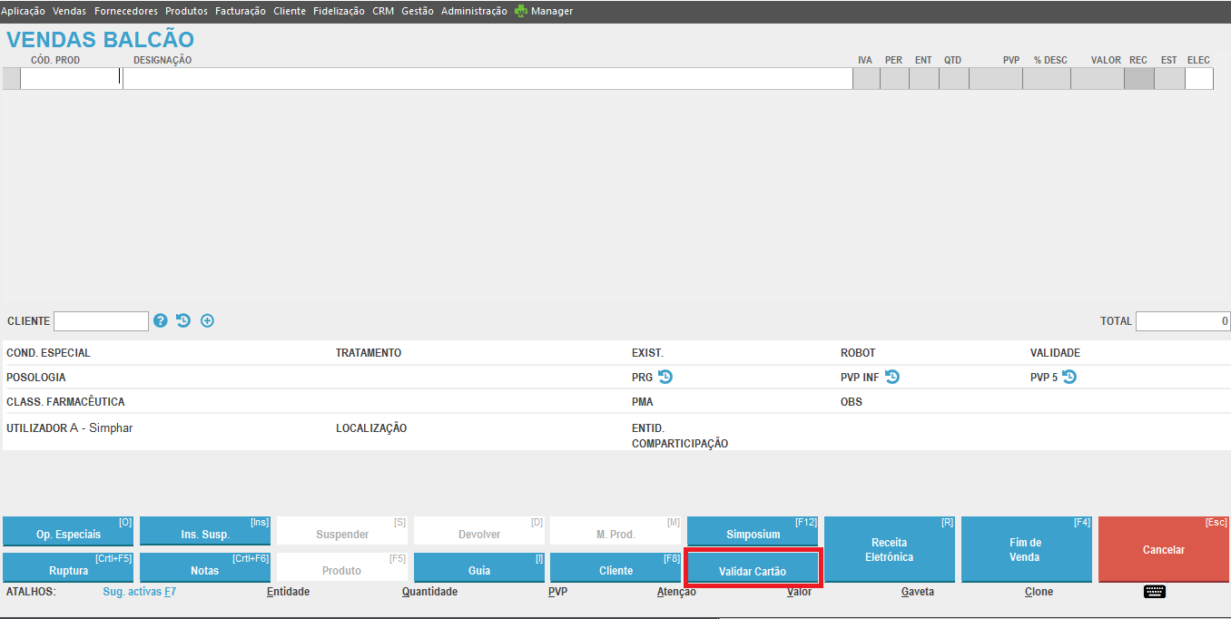 Validação do cartão no ato da dispensa