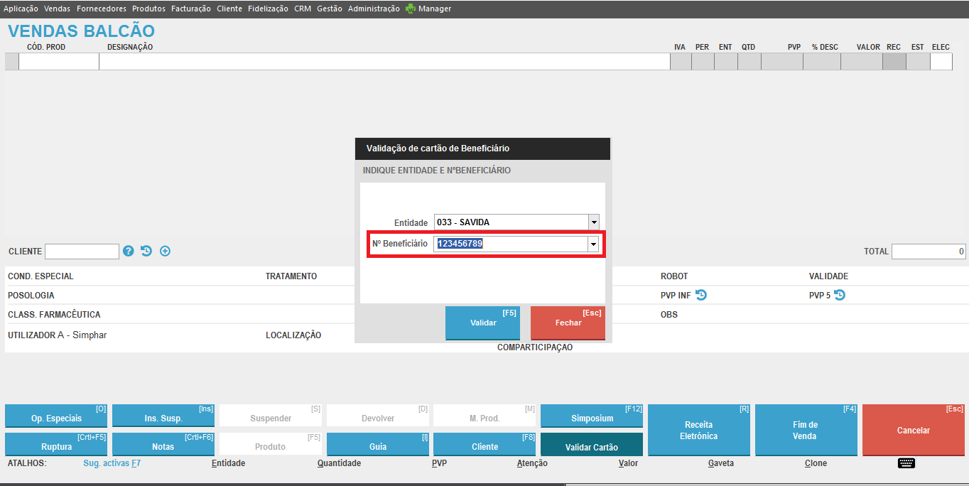 A venda é finalizada com validação do nº de beneficiário.