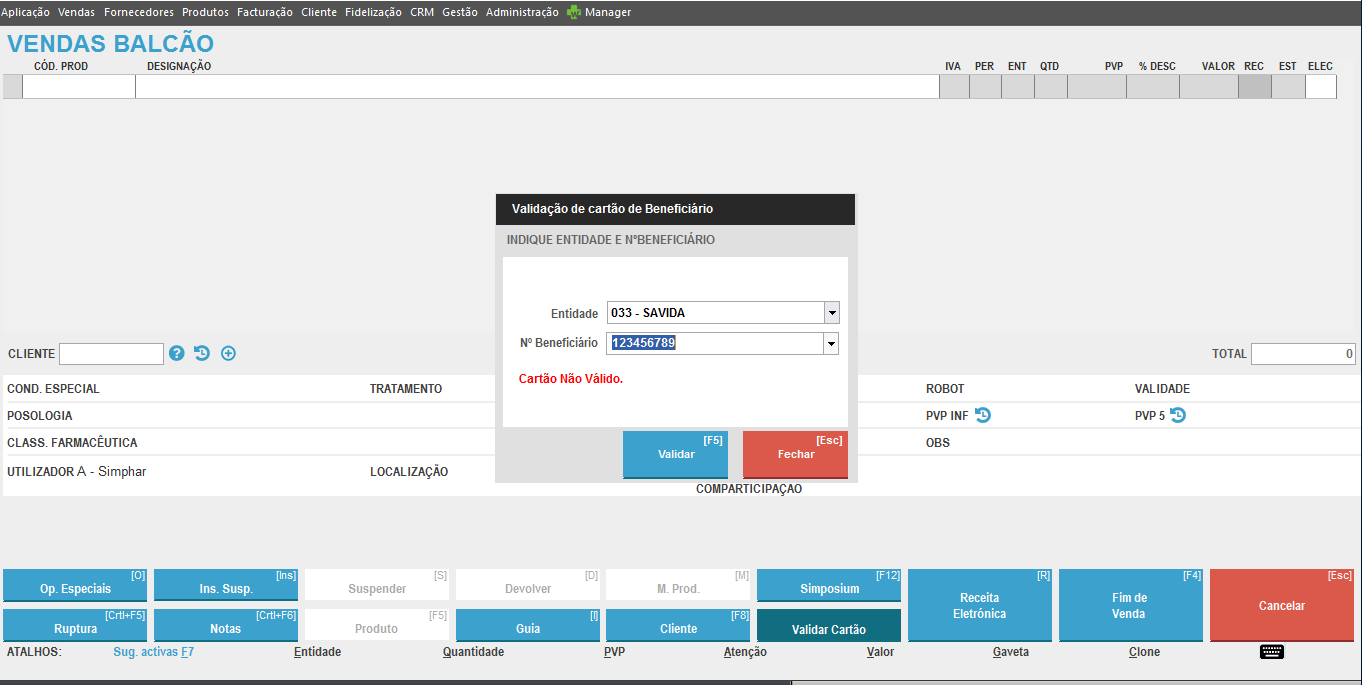 VALIDAÇÃO DO CARTÃO de BENEFICIÁRIO fora da dispensa