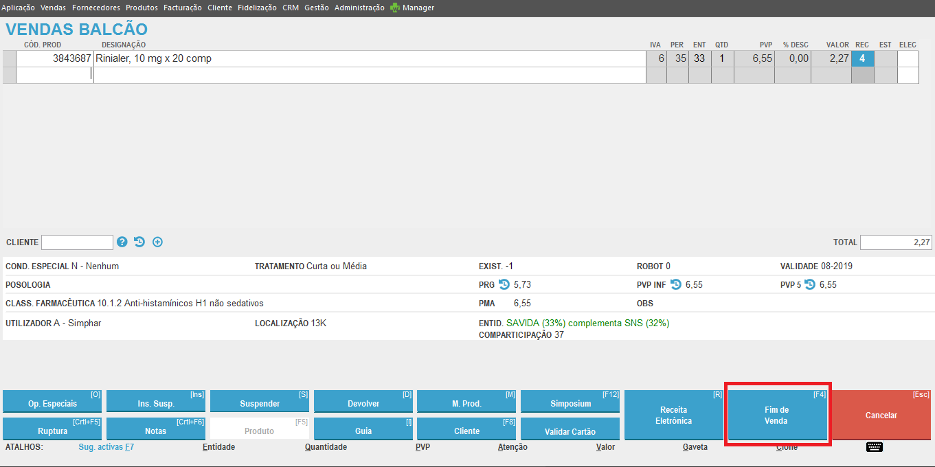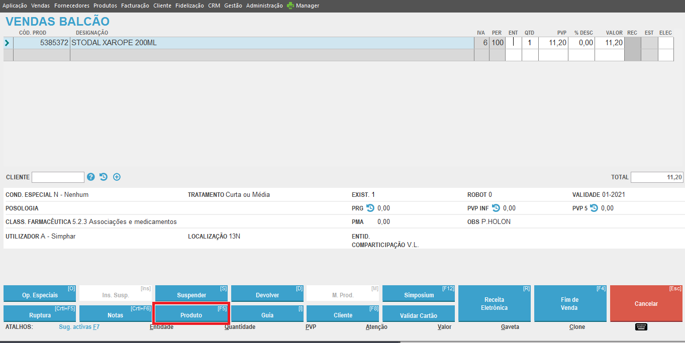 O botão Produto [F5], de acesso à Ficha de Produto, está novamente disponível ao Balcão.