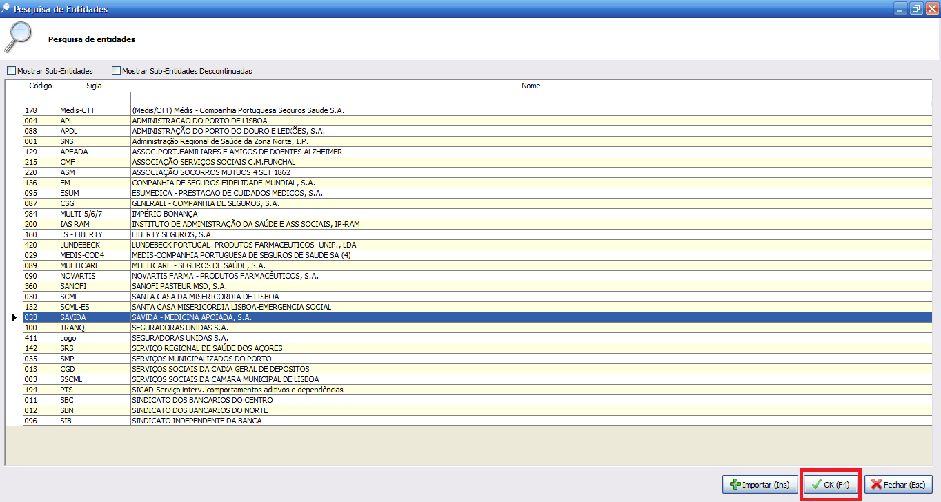 Selecione a Entidade desejada.