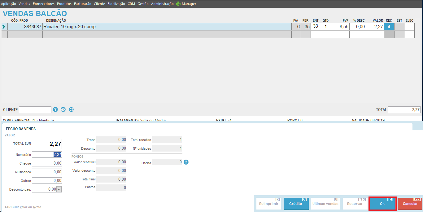 Efetue a dispensa ao balcão, como habitualmente.