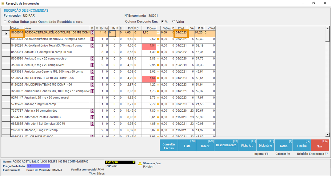 Agora, na recepção de encomendas, ao picar o código bidimensional o Winphar preenche automaticamente o campo da data de validade. Caso a data de validade do medicamento recepcionado seja inferior à data de validade que consta na Ficha de Produto, a Ficha é automaticamente actualizada.