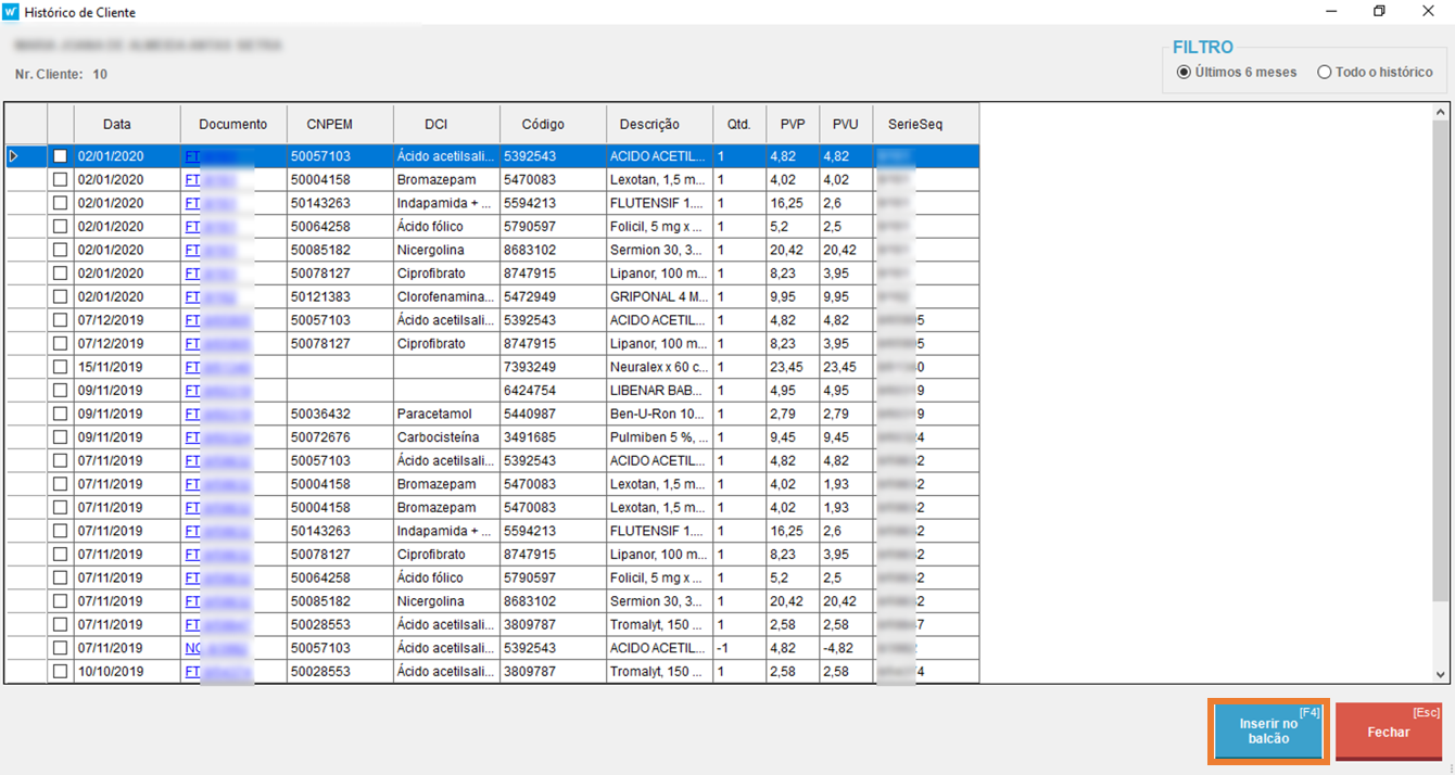 - Ao balcão consulte o histórico de cliente e seleccione a venda pretendida