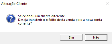 Ao clicar Não o crédito permanece na conta do primeiro cliente identificado e a fatura é emitida com os dados do cliente que selecionou por último.