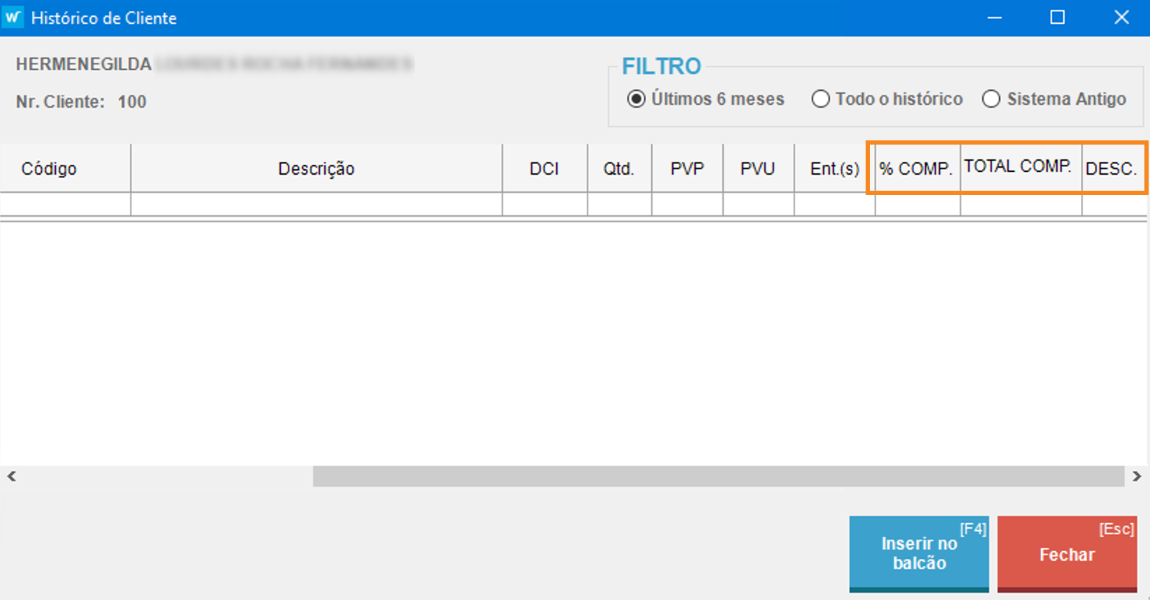 O Histórico de Cliente passou a contar com mais 3 colunas: