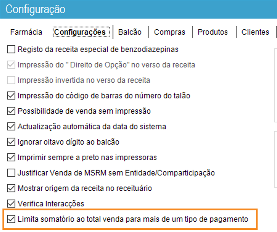 A partir desta versão, o Winphar passa a impedir pagamentos em que o somatório dos vários meios de pagamento seja superior ao valor da venda.