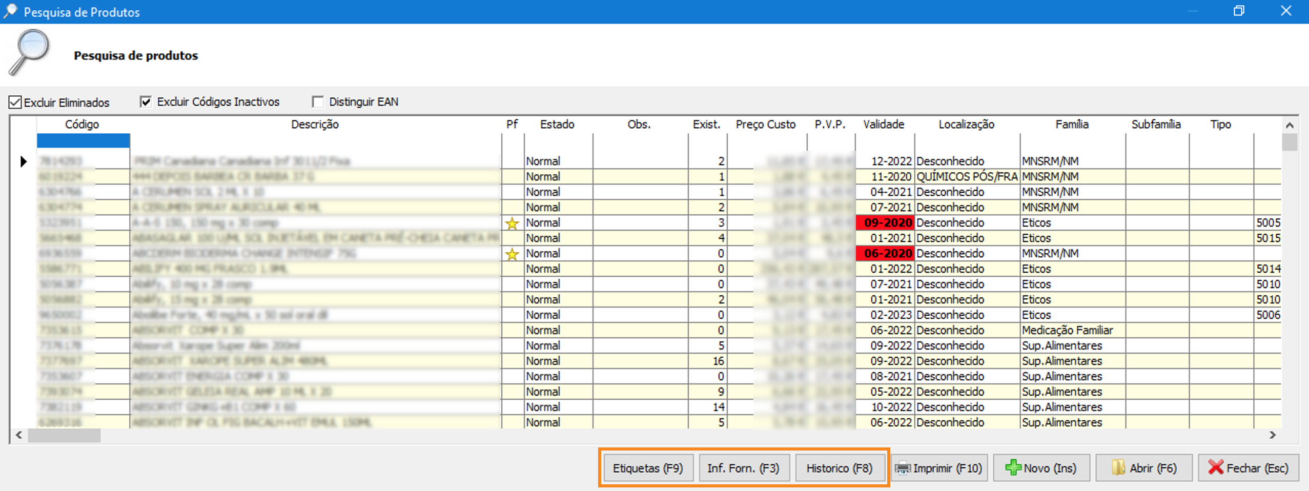 O acesso ao Histórico passa a ser possível diretamente na Pesquisa de Produtos (Produtos > Ficha), Preparação de Encomendas, Recepção de Encomendas, Balcão e Devoluções.