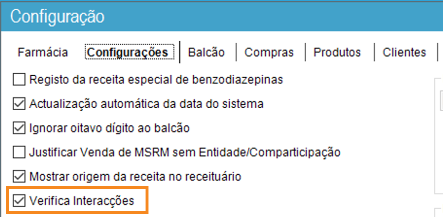 Para permitir a migração para a nova fonte de dados, conforme comunicação efetuada previamente, esta funcionalidade foi temporariamente desactivada em todas as farmácias até que esta versão esteja disponível em todos os nossos clientes. Será automaticamente reactivada nos clientes que a tinham ativa anteriormente. A ativação da funcionalidade pode ser efetuada acedendo a Administração > Configuração > Configurações, assim que o Winphar indicar um versão do Simposium com data de Agosto. A ativação em data anterior poderá resultar na apresentação de mensagem de erro ao balcão.