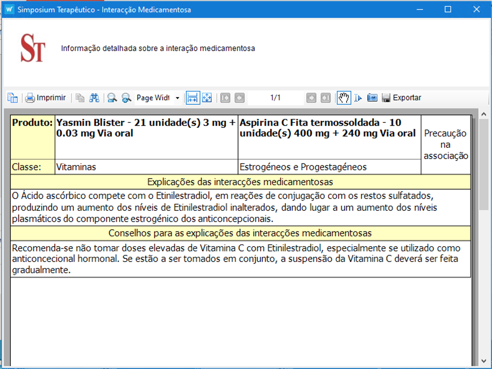 A primeira utilização desta informação faz-se sentir na melhoria dos alertas de interações medicamentosas, que agora abrangem não só os produtos ao balcão mas também os últimos 6 meses de histórico da ficha de utente. Quando é detectada uma potencial interação entre os medicamentos registados no Balcão, é gerado um alerta no canto superior esquerdo.