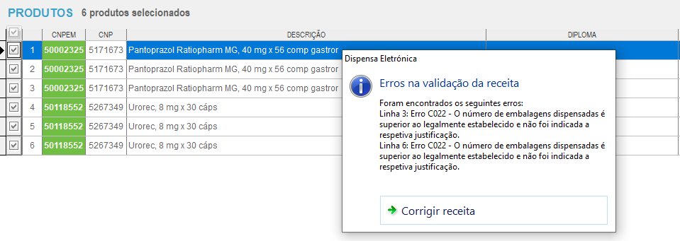 É frequente, durante a Dispensa Eletrónica de Medicamentos (DEM), que a validação de uma Receita resulte na apresentação do mesmo erro para várias linhas.