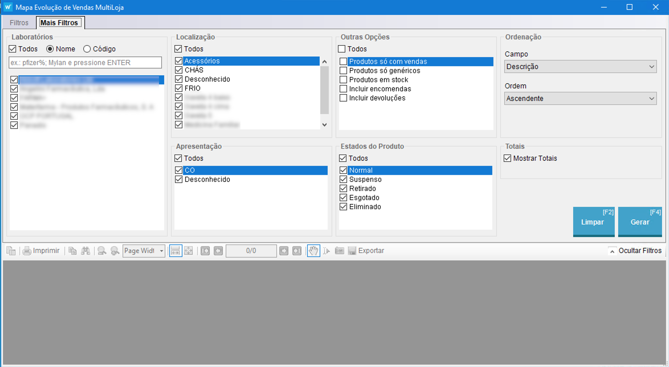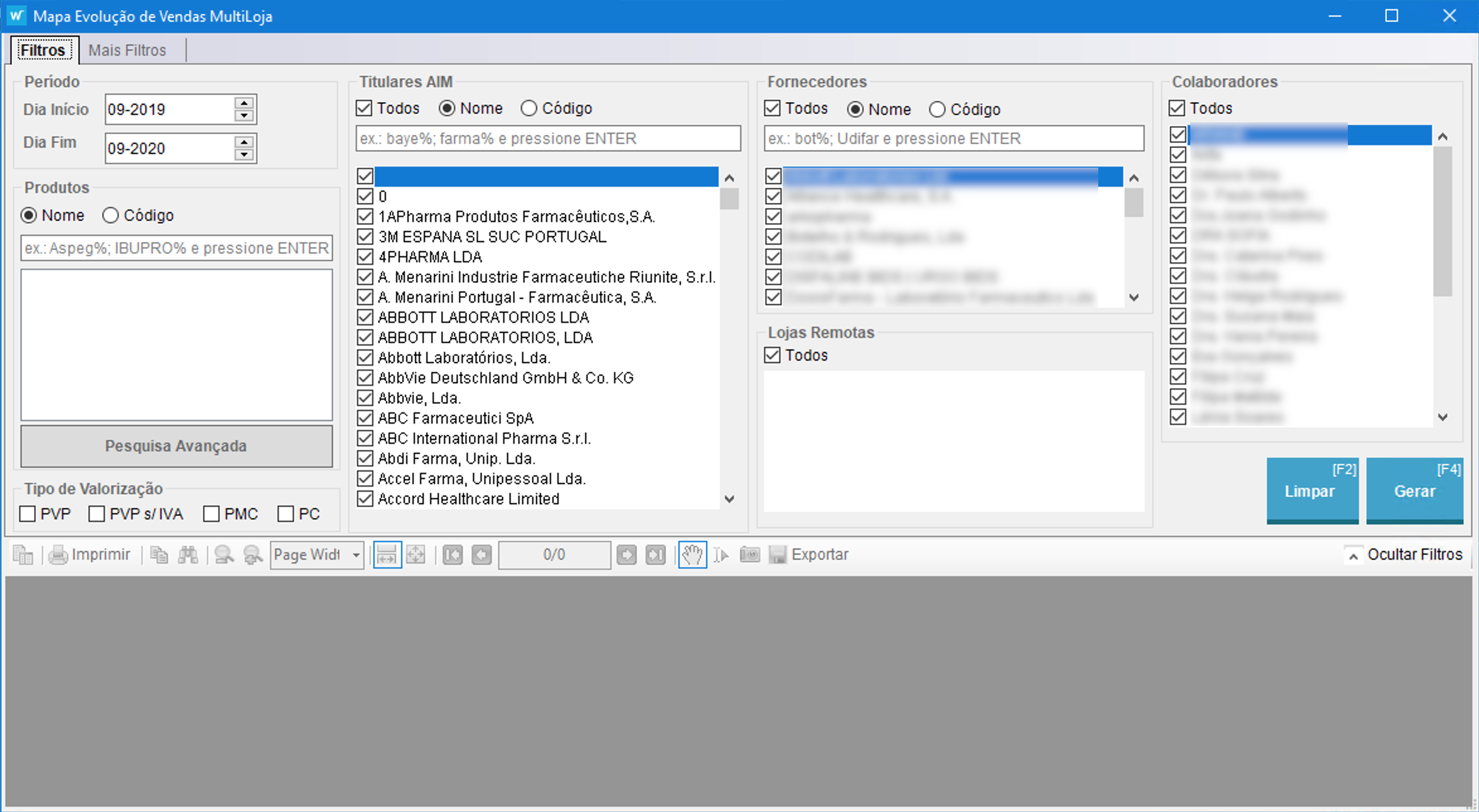 O Mapa Evolução de Vendas MultiLoja (disponível em Vendas > Controlo de Vendas > Evolução de vendas MultiLoja para os clientes com o módulo Multi Loja ativo) foi atualizado, apresentando agora os mesmos filtros que o Mapa Evolução de Vendas.