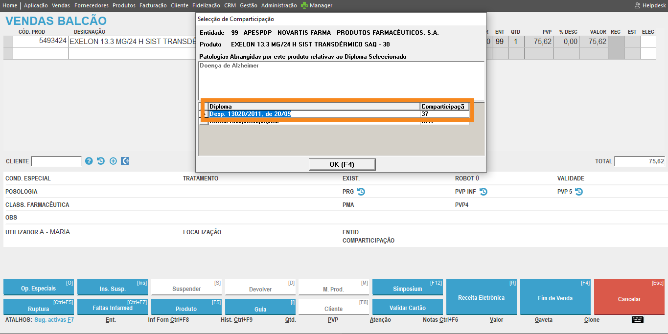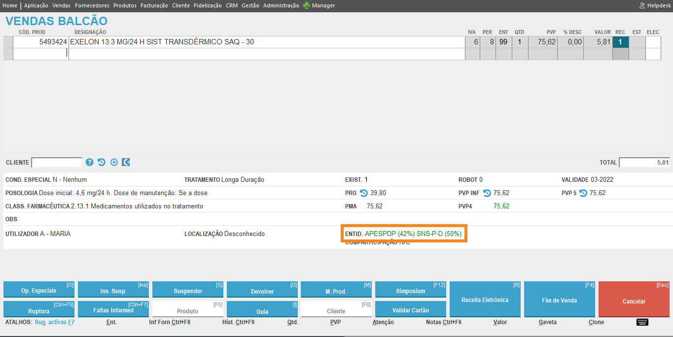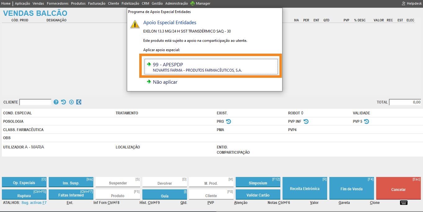 … o Winphar preenche agora a entidade principal de forma automática ao balcão.