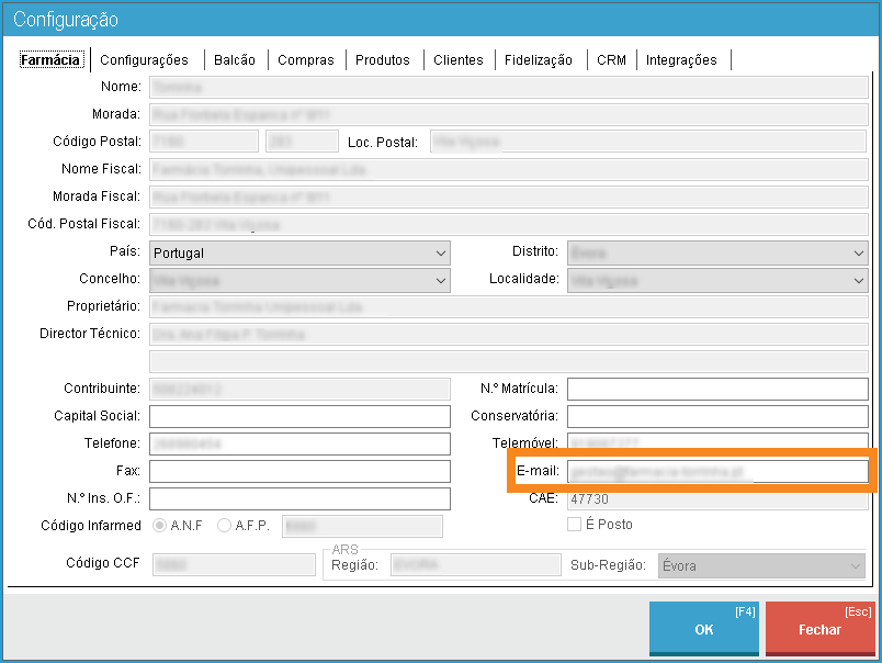 Pode verificar se já tem um endereço de email configurado através do menu Administração > Configuração > Farmácia.