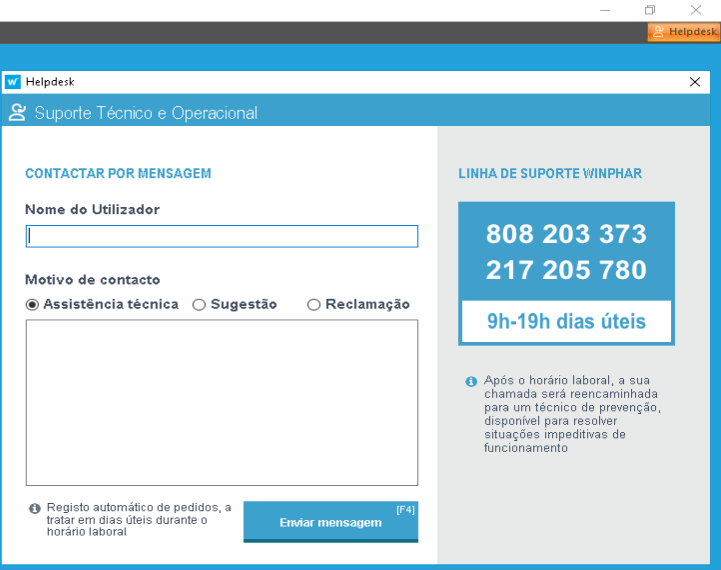 Quando envia um pedido de suporte através do menu Helpdesk, a equipa Winphar tenta contactar por telefone com a maior brevidade possível. Por vezes, são efetuadas várias tentativas de contacto sem sucesso, o que infelizmente atrasa a resolução do problema reportado.
