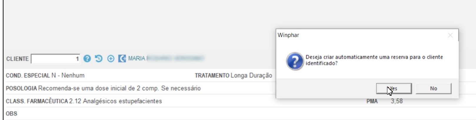 Ao realizar uma encomenda instantânea com sucesso, o Winphar dá-lhe a opção de criar automaticamente uma reserva para o utente selecionado ao balcão.