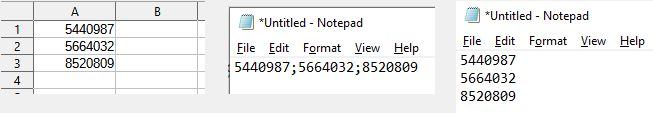 Para efetuar um copiar e colar (copy, paste), a origem dos CNPs (copiar) pode ser um ficheiro de texto ou uma folha de cálculo. Se for um ficheiro de texto, os CNPs podem estar separados por linhas ou por ponto e virgula (;). Se for uma folha de cálculo, deverá estar um CNP por célula.