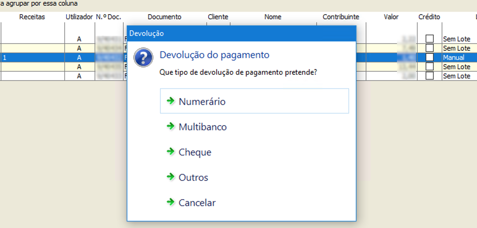 Nas versões anteriores do Winphar assumia-se que um estorno era sempre efetuado em numerário. A partir de agora passam a estar disponíveis os mesmos métodos para devolução de um pagamento que são aceites para a realização de pagamentos.
