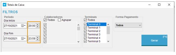 1. Novo campo Hora no Mapa Totais de Caixa