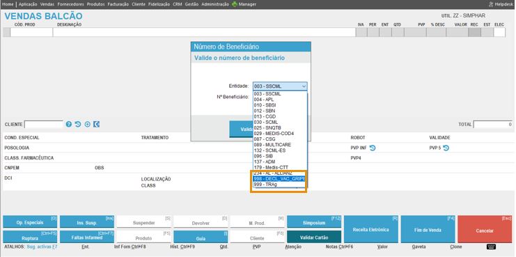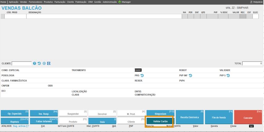 Ao balcão clique em Validar Cartão.