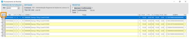 Assim, e à semelhança do lote 97 dedicado às receitas sem papel, passou a ser possível marcar todas as receitas SNS-TRAg de uma vez só como confirmadas, automatizando o processo de loteamento de receitas e agilizando desta forma o fecho de faturação do SNS.