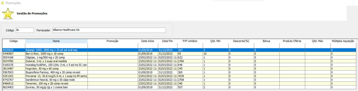 3. Acesso à Gestão de Promoções no menu Fornecedores: Alliance Healthcare