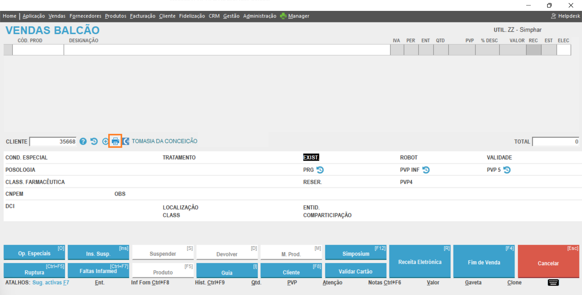 Adicionámos um novo ícone junto à zona de identificação do cliente, ao Balcão, sinalizado com uma impressora.