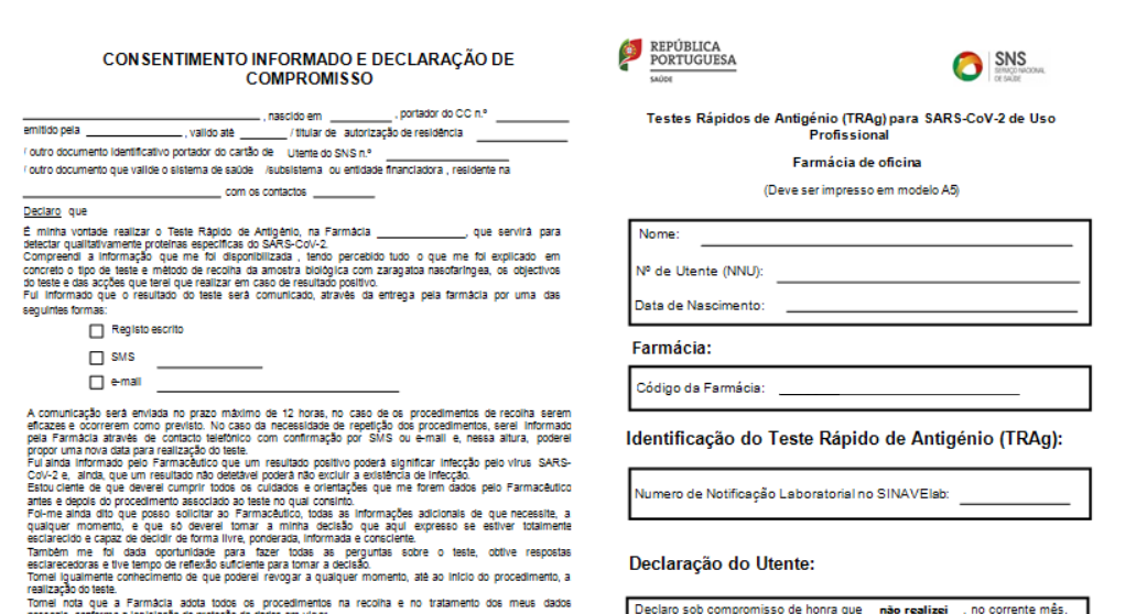 Nesse sentido e de acordo com as normas preconizadas para a realização de Testes Rápidos COVID-19 comparticipados pelo SNS, o Winphar passou a abrir automaticamente a Declaração de Compromisso de Honra, bem como a Declaração de Consentimento Informado, logo após a Verificação de Elegibilidade do Utente, ao Balcão.