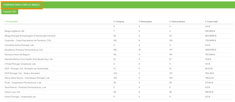 Pode visualizar os detalhes das suas compras ou exportar os dados no formato CSV.