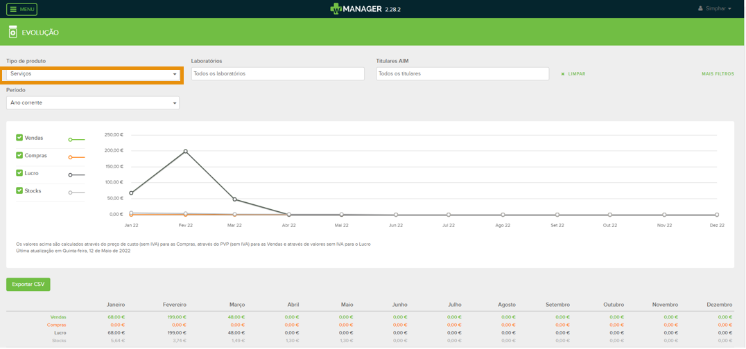 2. Winphar Manager: Novo tipo de produto “Serviços” na dashboard Evolução