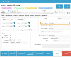 Tal como informámos nas novidades da versão 7.19, vimos relembrar que para que os serviços sejam corretamente considerados as respetivas fichas de produto devem estar parametrizadas como SERVIÇO no campo Tipo de Produto: