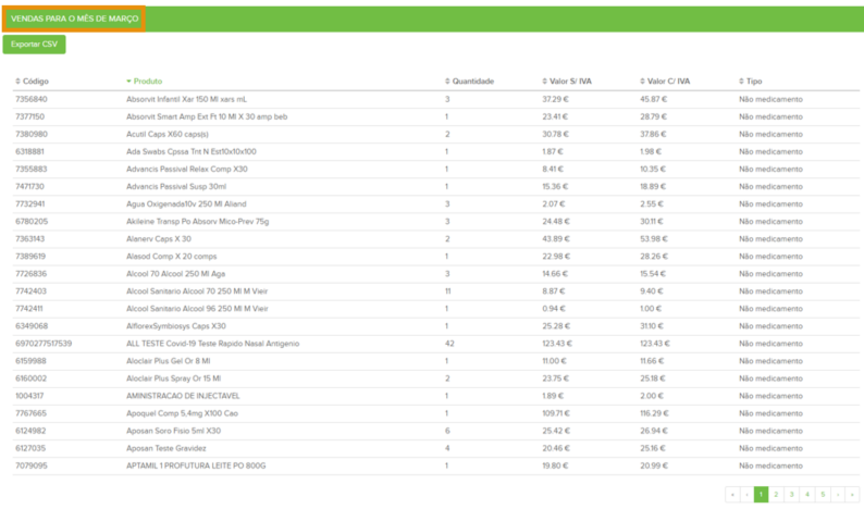 Pode visualizar os detalhes das suas vendas ou exportar os dados no formato CSV.