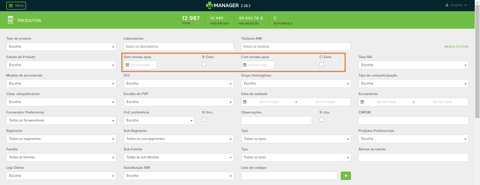 5. Winphar Manager: Novos filtros “Sem vendas após” e “Com vendas após”