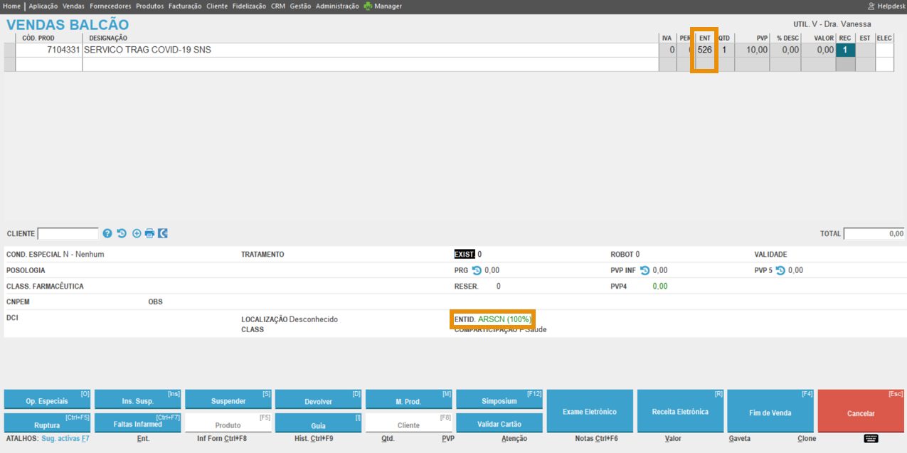 Clique em Fim de Venda [F4] para efetivação e comunicação da prestação do TRAg MCDT aos SPMS.