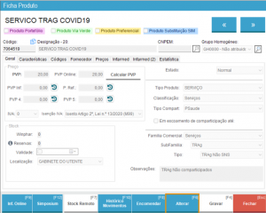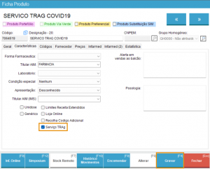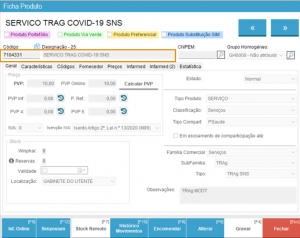 Para ativação do novo fluxo de registo, e independentemente da sua farmácia utilizar o SINAVE INTERNO ou EXTERNO, deverá aceder a cada uma das fichas de produto dedicadas na sua farmácia aos serviços TRAg (ex: 7064519) e proceder à sua parametrização, seguindo o seguinte procedimento: