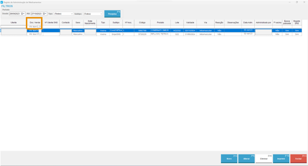 Foi adicionada uma nova coluna dedicada ao Doc. Venda, que permite a rápida identificação da venda associada a cada um dos registos de vacinação.