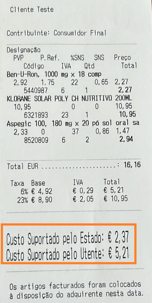 Adicionalmente e no seguimento da publicação da Portaria nº 51/2024 de 15 de fevereiro, que produziu efeitos no dia 1 de março de 2024 e que prevê, entre outros pontos, as regras de formatação das informações obrigatórias sobre o preços dos medicamentos e a comparticipação do SNS que devem constar na fatura/recibo ou recibo emitido ao utente, foram adicionados novos elementos à fatura, em concreto o Custo Suportado pelo Estado e o Custo Suportado pelo Utente. Descrevemos seguidamente e no ponto 1 os elementos constantes das novas faturas e respetivas regras.