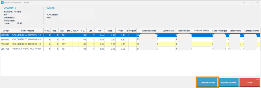 Caso na venda tenha sido utilizada mais do que uma receita eletrónica para dispensa, a informação será apresentada individualmente por receita médica.