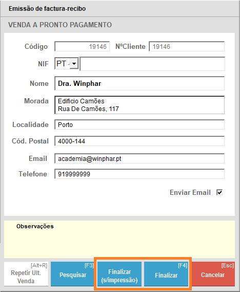 Pode reverter este último passo ao clicar em Traduzir para Português. A impressão da versão inglesa do documento também se encontra disponível ao clicar em Imprimir [F6], bem como a integração com o dispositivo de assinatura digital, que reflete todo o texto em inglês – Assinatura Digital [Ins].