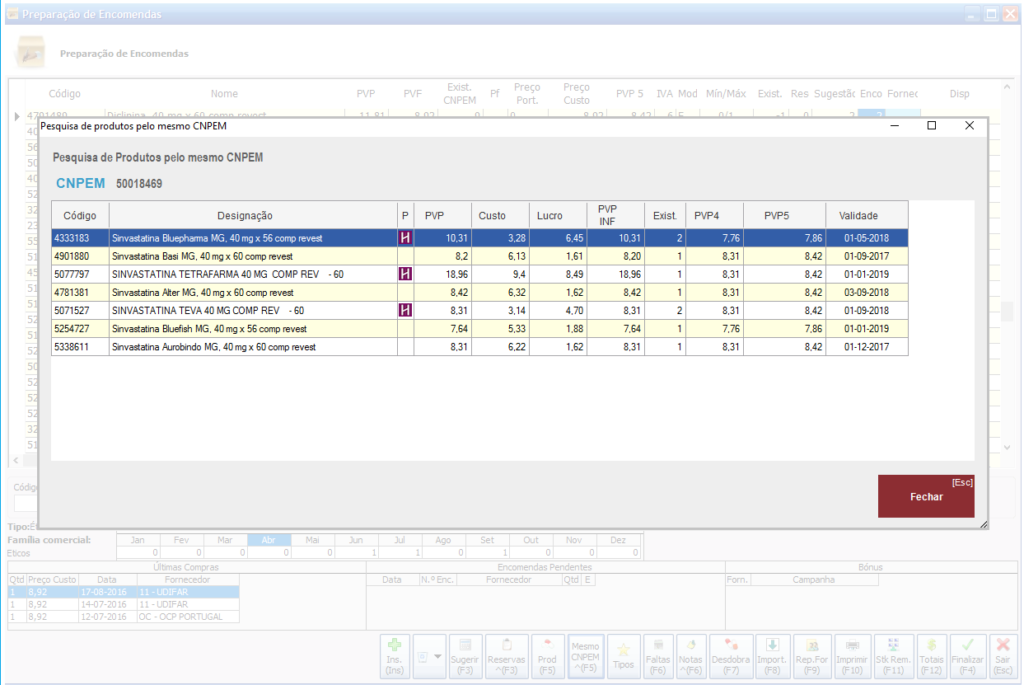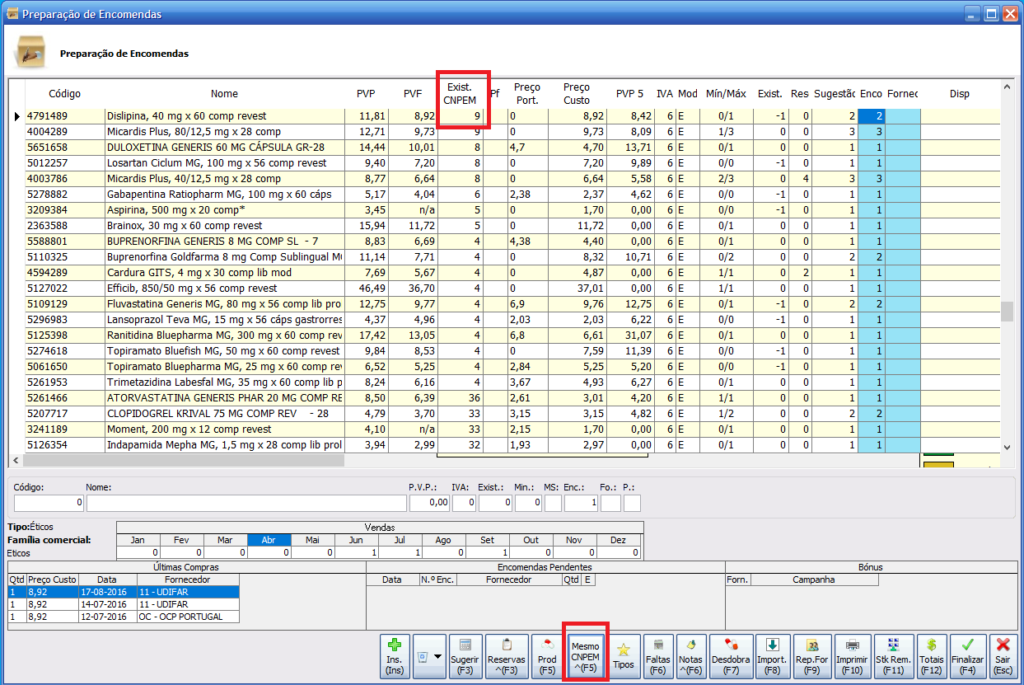 É agora possível visualizar o número de existências por CNPEM para o produto sugerido, ajustando assim as compras da farmácia o mais possível às vendas efetivas em determinado CNPEM.