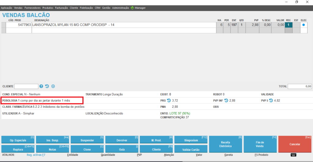 É agora possível visualizar a posologia prescrita pelo médico no Menu das Vendas, evitando assim ter de voltar à Receita Eletrónica para aceder a esta informação.